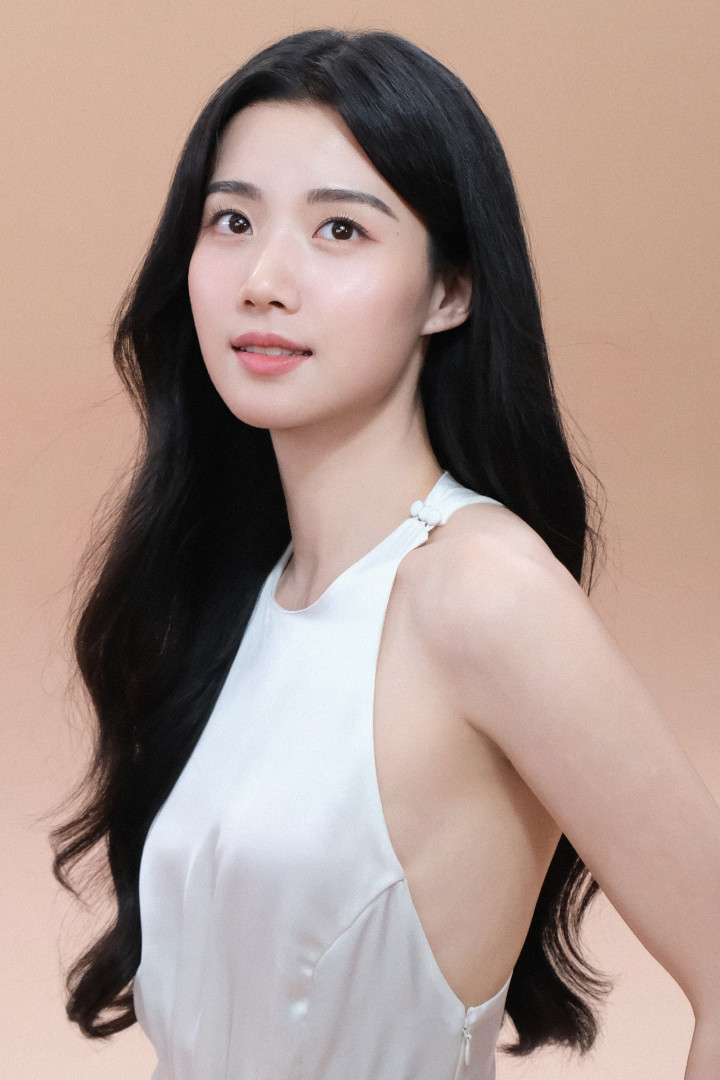 卢昱晓把优雅穿在背上! 长卷发垂落露肩背, 淡雅妆容藏妩媚